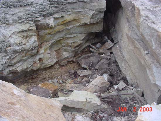 ![]() View up dip, failure on right |